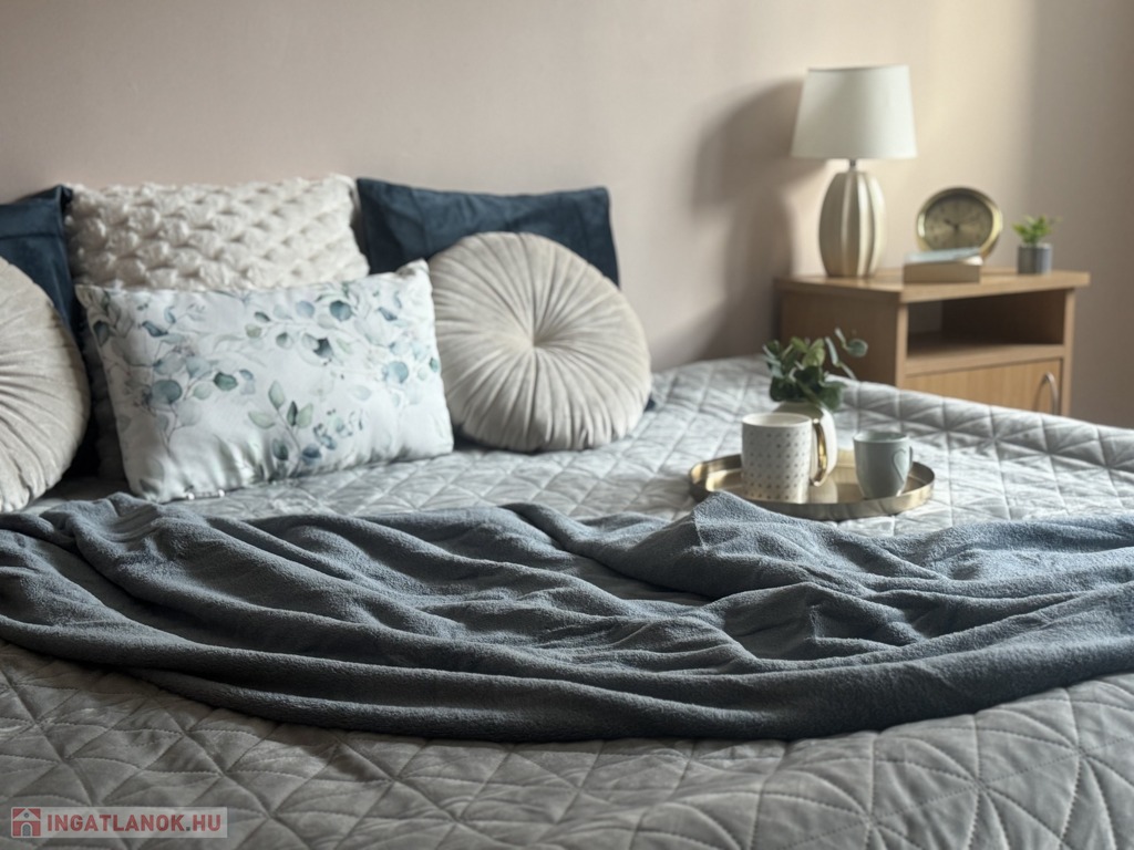 A lakás részben bútorozott és gépesített, hűtővel és tűzhellyel felszerelt azonnal költözhető. A hálószobában lévő ágy, a dekorációk és díszpárnák nem tartoznak a bérlemény felszereltségéhez, de igény esetén megvásárolhatóak.