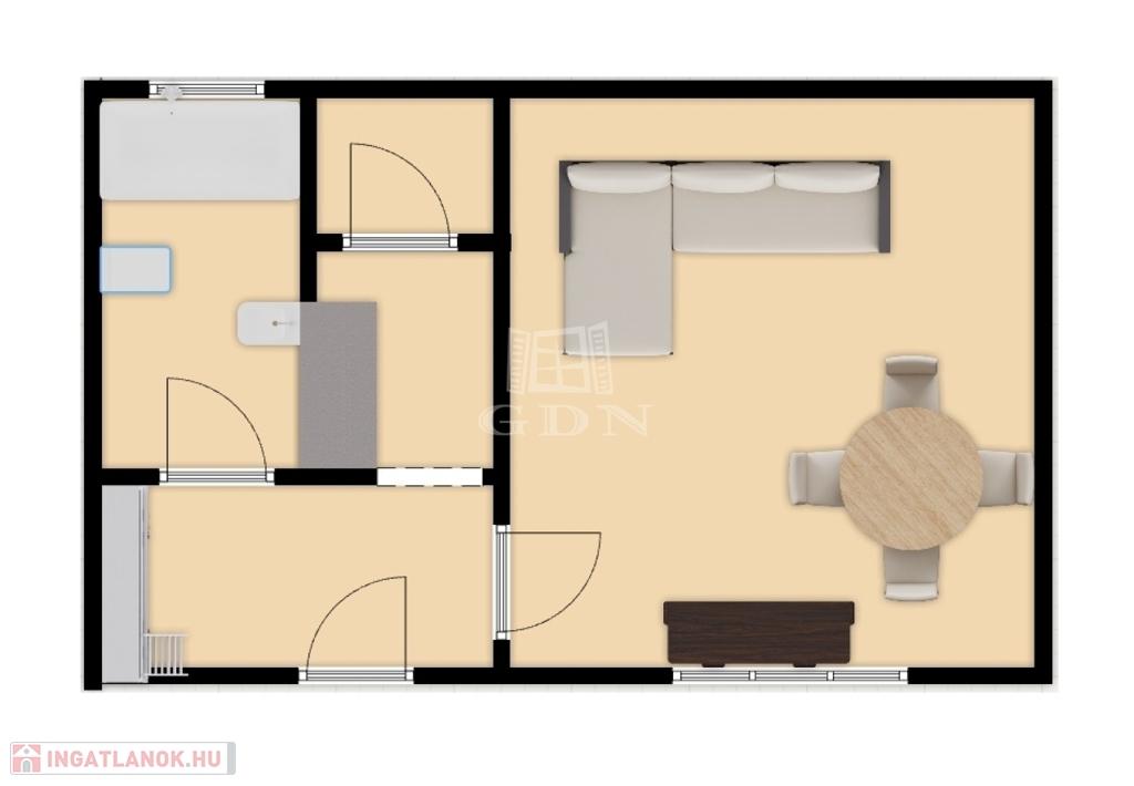 A földszinti ingatlan 29 négyzetméter alapterületű és egy szobával rendelkezik.