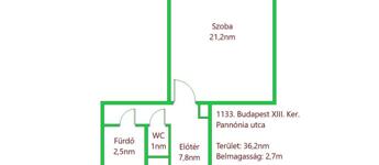 A szoba 21 nm-es, napfényes és csodálatos kilátás van a budai hegyekre. Fürdőszoba kádas, mosógéppel, WC külön helyiségben. Közlekedőben beépített szekrények vannak. Alacsony rezsivel fenntartható, közös költség 12.000Ft, vízóra van. A mérhető és szabályozható távfűtés legmagasabb díja 7e.Ft volt, készenléti díj 3e.Ft, mely a meleg vízszolgáltatást is magába foglalja.Tisztasági festést követően 2025 Október végén költözhető