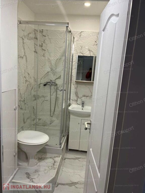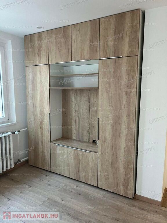 A fotókhoz képest változás, hogy fözőlap már beszerelésre került, hűtőt, mosógépet és ágyat azonban a bérlőnek kell hoznia.