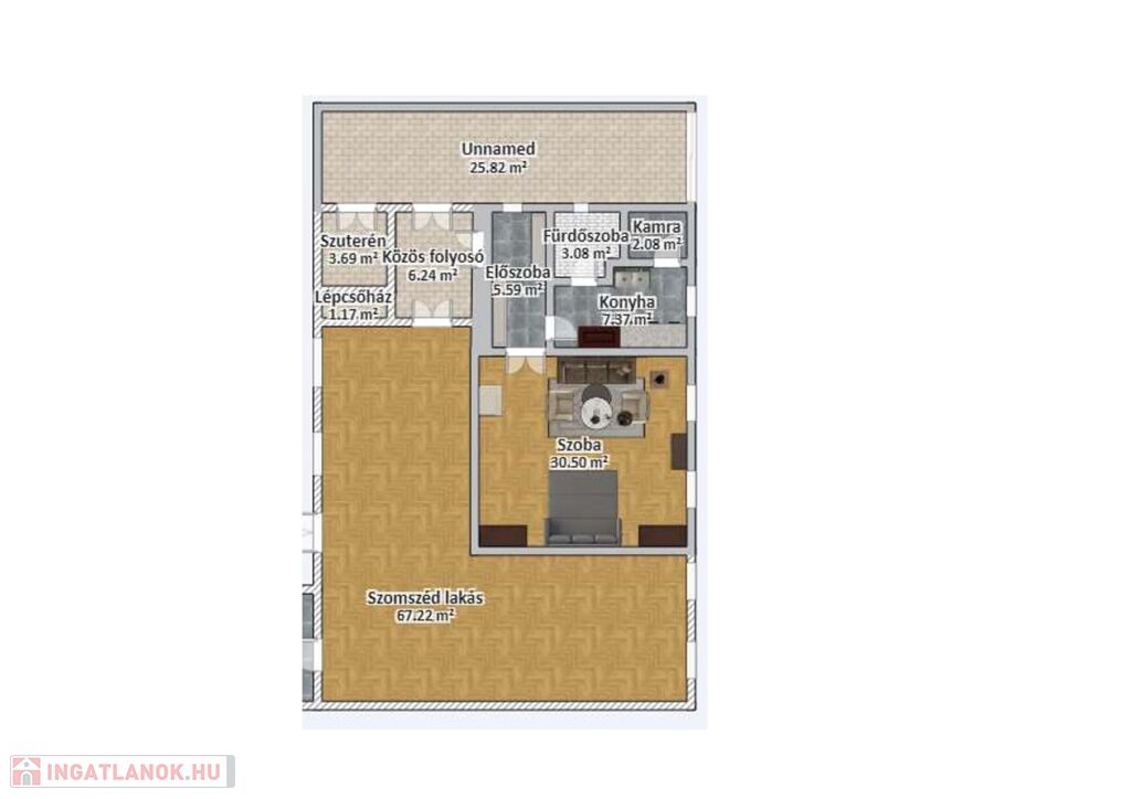 Mosdó, teakonyha, kisméretű tároló rendelkezésre áll továbbá nagyobb előtér és nagy belmagasságú 30 nm-es világos utcafronti szobája, ideális irodai használatra. Szükség esetén irodabútor rendelkezésre áll.