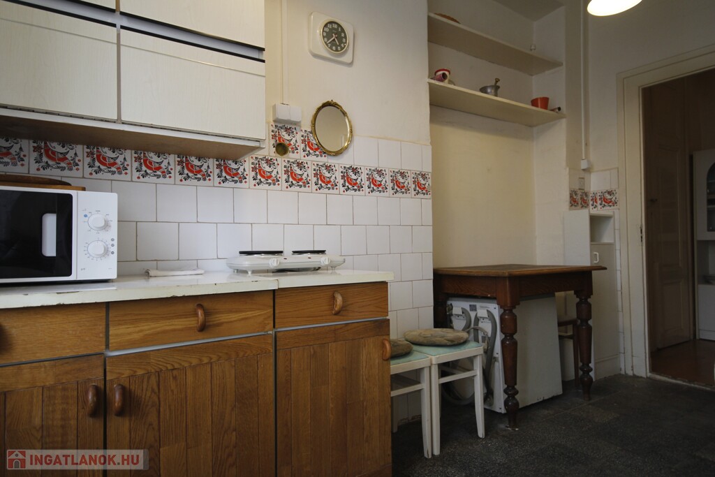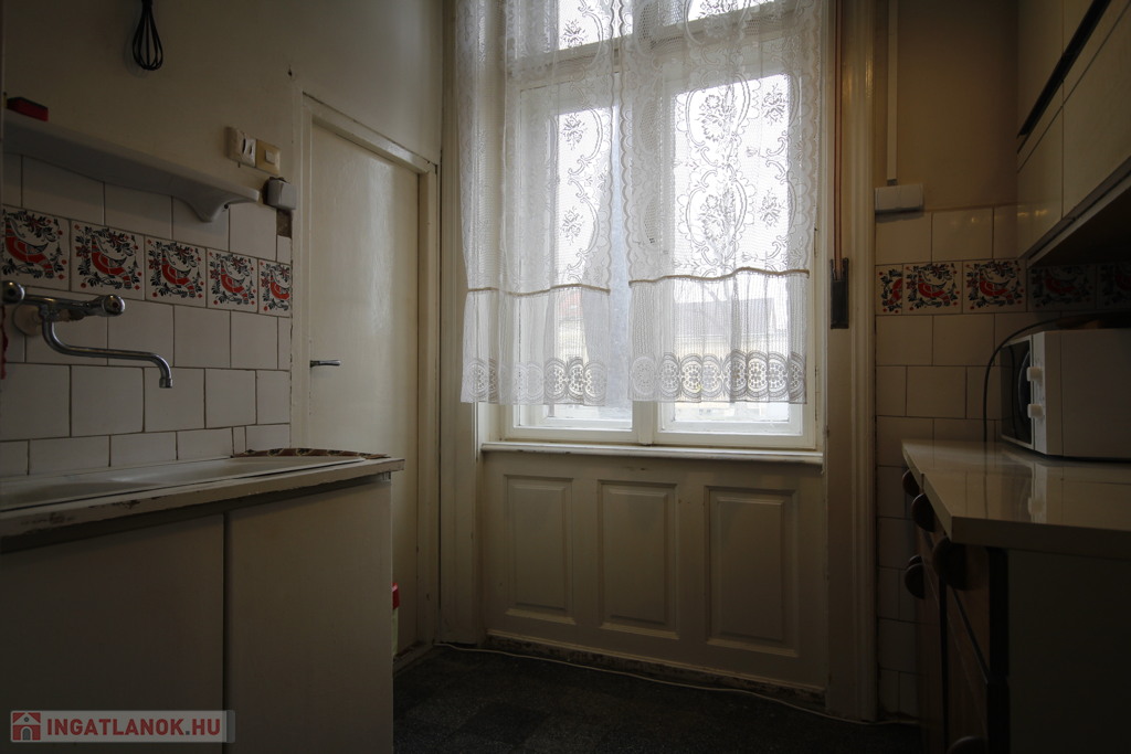 Belvárosban, kapubeállóból közvetlenül megközelíthető, földszinti 50 nm-es 1 szobás nagypolgári lakás.