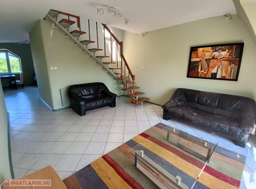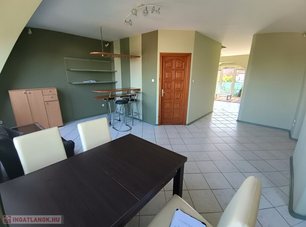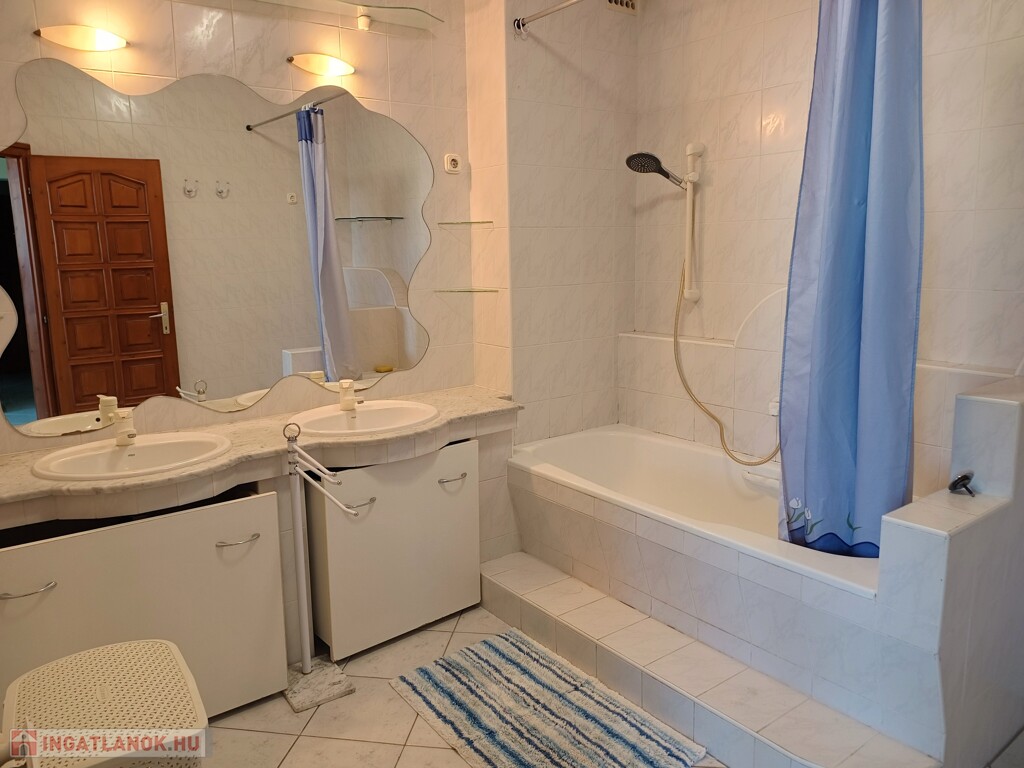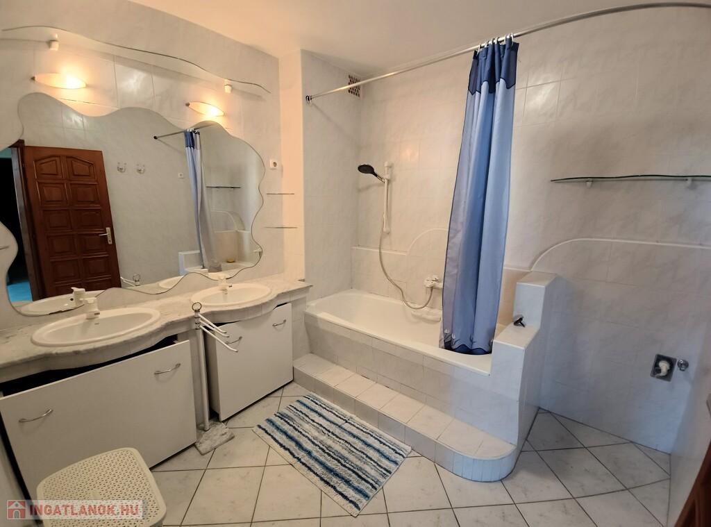 - Alsó szint helyiségei: előszoba, konyha, nagyméretű étkező + bár, nappali, kétmosdós nagy fürdőszoba, WC külön, erkély.