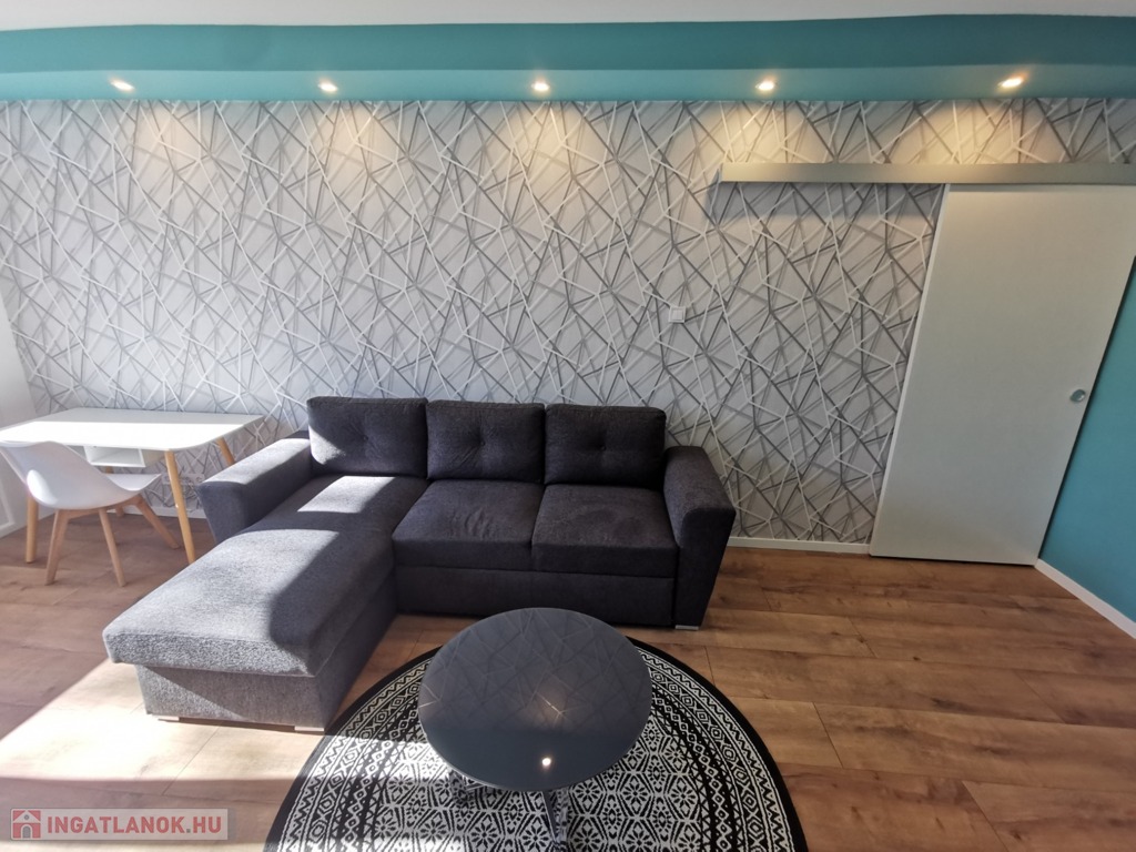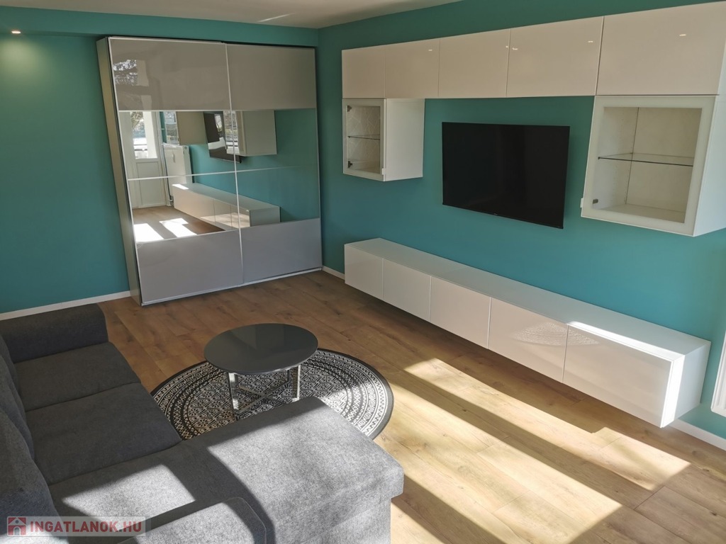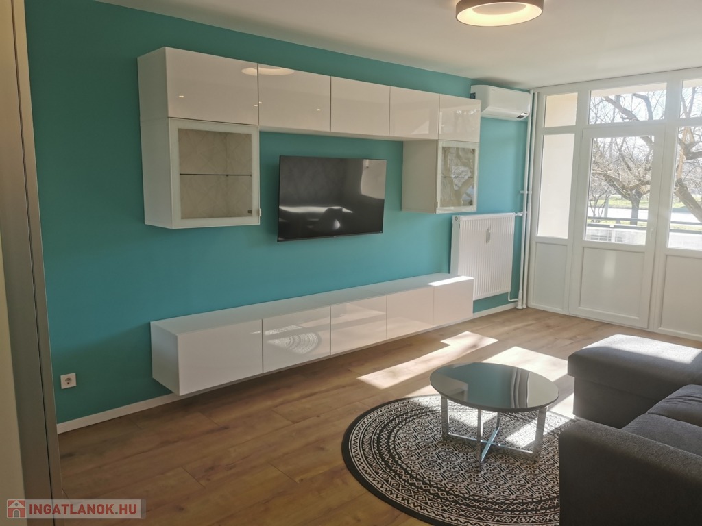 Lakás bútorozott, gépesített, 4K smart TV-vel felszerelve.