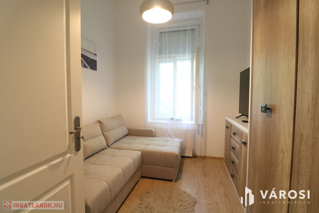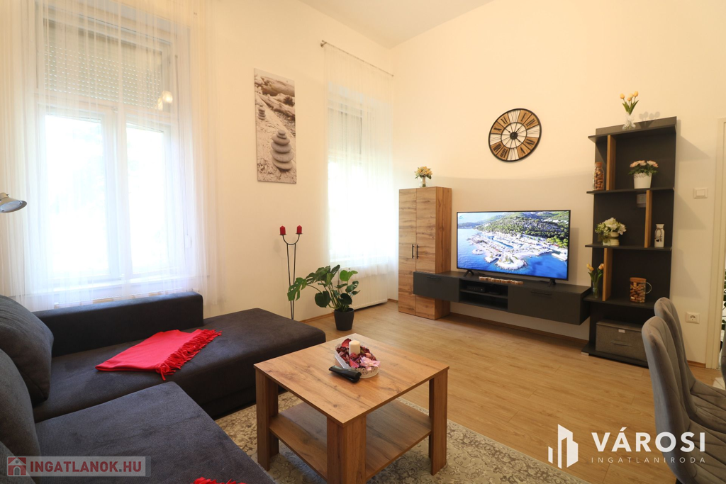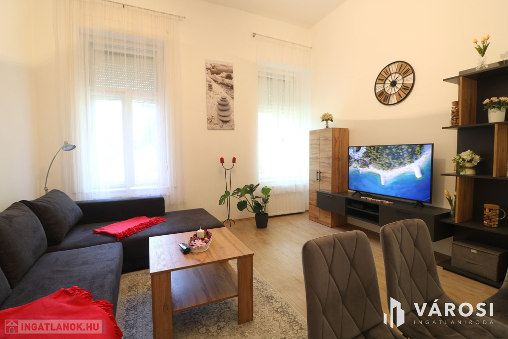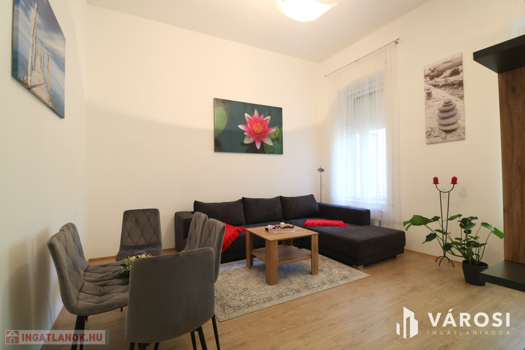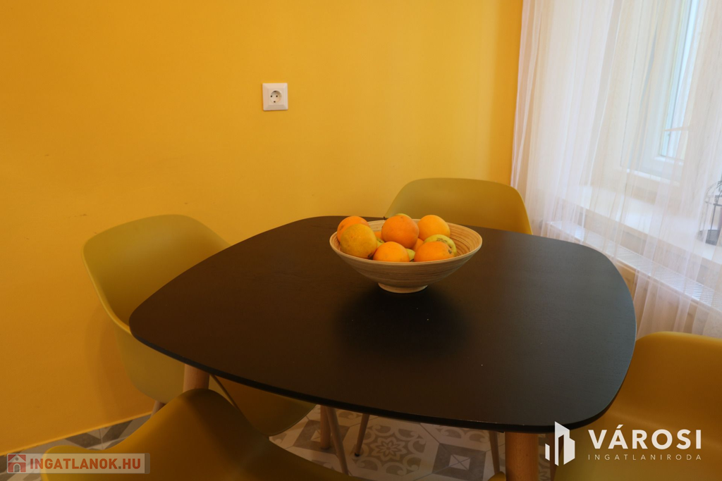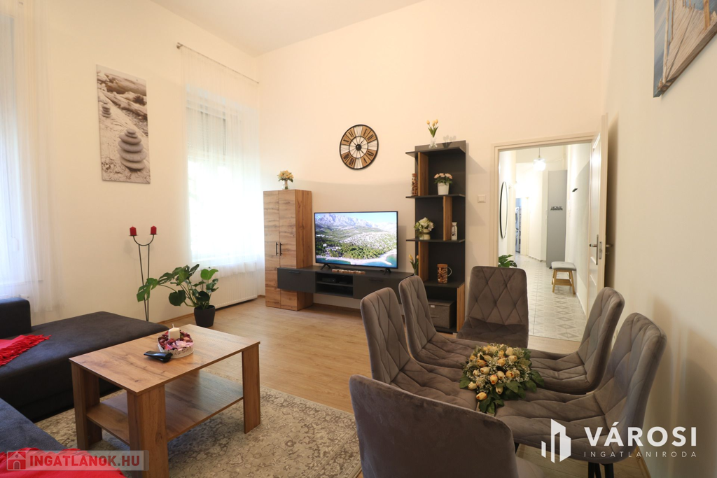 Szeged Belvárosában az Anna kút közvetlen szomszédságába 1. emeleti,67 nm -es háromszobás, szuperül berendezett, felszerelt 69 nm -es lakás kiadó.