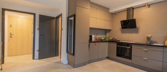 Alapterülete 40 m2, amerikai konyhás nappali és 1 hálószobás elrendezésű. Az átgondolt helykihasználásnak köszönhetően több beépített szekrénnyel és egy külön tároló helyiséggel is rendelkezik, ahol a mosógép és a kazán kapott helyet.