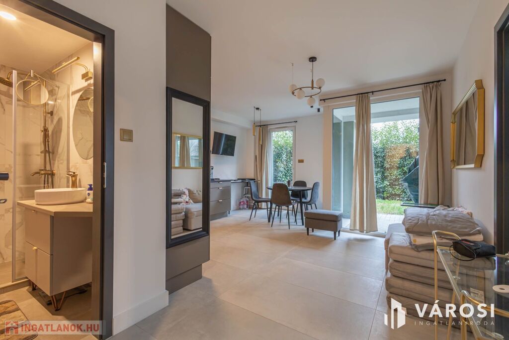 A társasház udvarán közös medence is található, valamint a lakáshoz udvari autóbeálló is tartozik!