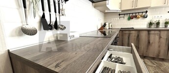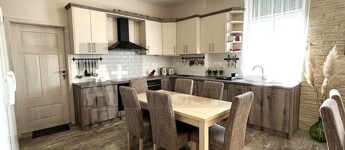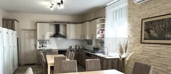 A konyha teljesen felszerelt, gépesített a háztartási helyiségben mosó és szárítógép is van.