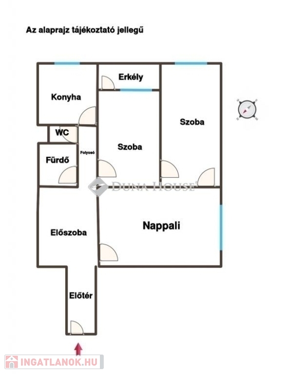 A lakásban 3 teljes értékű szoba található, valamint egy tágas, 9 m²-es előszoba, amely akár étkezőként is kiválóan hasznosítható.