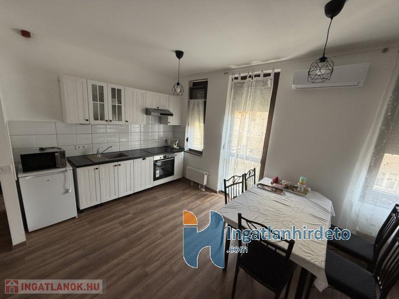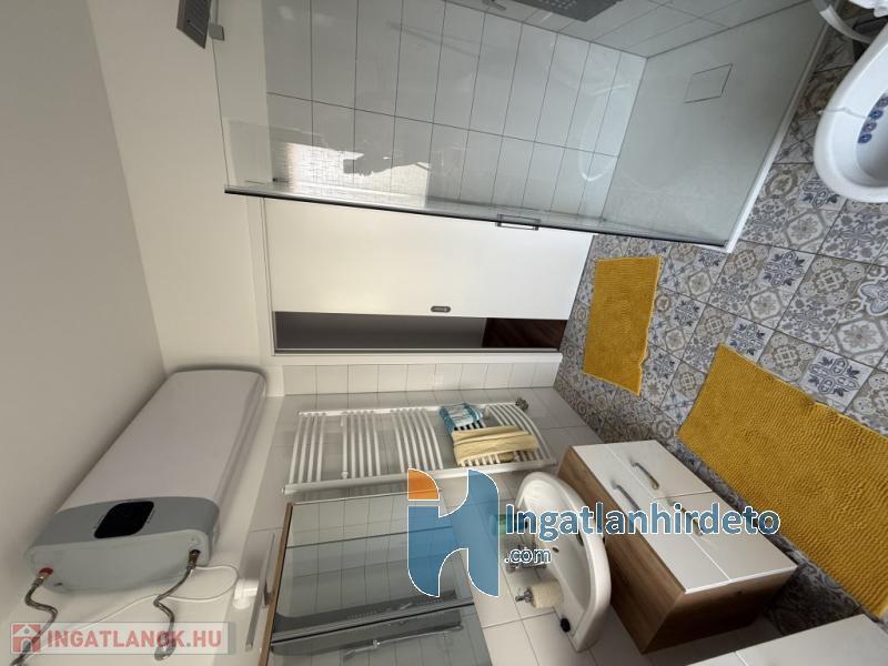 Elhelyezkedése: Társasház Emeleti elhelyezkedés: Emeleten Emelet száma: 2 Épület emeleteinek száma: 3 Tájolása: Déli tájolású Állapota: Újszerű Komfort besorolása: összkomfortos Építési éve: 2017 Alapterülete: 61 m2 Szobák száma: 2szoba Felújított: Felújított Felújítás éve: 2025 Felújítás során elvégzett munkák: Festés, Villanyrendszer csere, Vízrendszer csere, Fűtésrendszer csere, Csempe csere, Járólap csere, Álmennyezet beépítése, Fűrdőszobai szaniterek cseréje, Belső átépítés, Új beépített bútorok Közművek: Víz Vízellátás: Vezetékes víz Melegvíz-ellátás: Villanybojler Fűtés módja: Gáz, Villany Fűtés típusa: Házközponti egyedi mérővel Homlokzat állapot: Újszerű Építési mód: Tégla Tető formája: Magas Tető anyaga: Cserép, Beton tetőcserép Parkolási lehetőség: Utcán Kilátás: Udvari kilátás Napelem: Nincs Jellemzői: Csendes környék, Jó közlekedés, Redőny, Légkondicionáló, Étkező, Amerikai konyha, Beépített konyhabútor, Kaputelefon, Riasztó Energetikai besorolás: Nincs adat Egyéb jellemzők: Erkély Tv, Internet: Kábeltévé, Internet Közelben: Iskola, Óvoda, Vasútállomás, Autóbuszállomás, Helyi autóbuszállomás, Orvosi rendelő, Bolt, Gyógyszertár, Postahivatal, Vendéglátó egység Rezsi költség(Ft): 10000