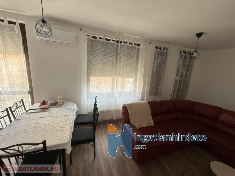 Hosszú távra, minimum 1 évre kiadó egy 61 m²-es, 2. emeleti, bútorozott és klímás lakás Zalaegerszeg szívében, a Deák téren, egy lifttel felszerelt társasházban.